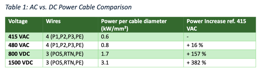 当前行业仍主要依赖 54V 直流或 415V 交流的低压供电体系,必须使用大量铜缆,也造成了空间浪费与经济不可行性。