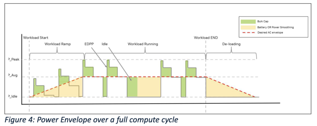 ◎短时波动(毫秒到秒级)由机架级的超级电容或高功率电容吸收,它们响应速度极快,可在瞬间抵消 GPU 峰值电流的冲击。